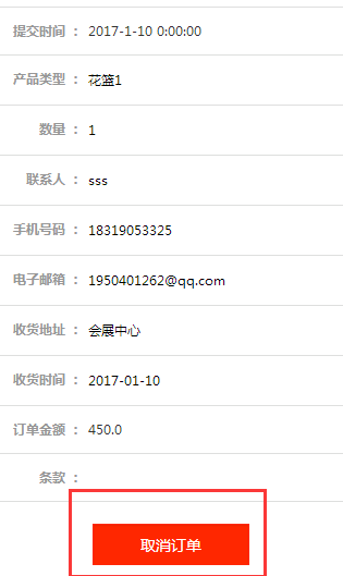 5.进入订单详情页面,单击取消订单,申请撤销该订单。注意该按钮在最低下。如下图