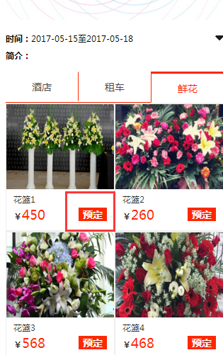 2、选择单个鲜花单击预订按钮。如下图