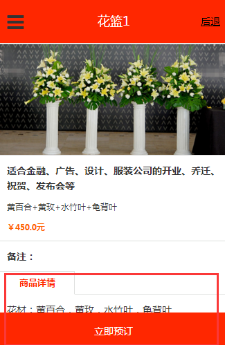 3、进入鲜花预订页面,单击立即预订。如下图